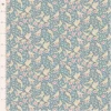 A lovely muted tone of blue ground, covered with a cream coloured “art nouveau” style outline depicting small scale scrolling flowers and foliage