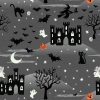 A multi-directional design showing tiny Scandinavian Tomten (Santa Claus’) within regularly spaced snowballs.
